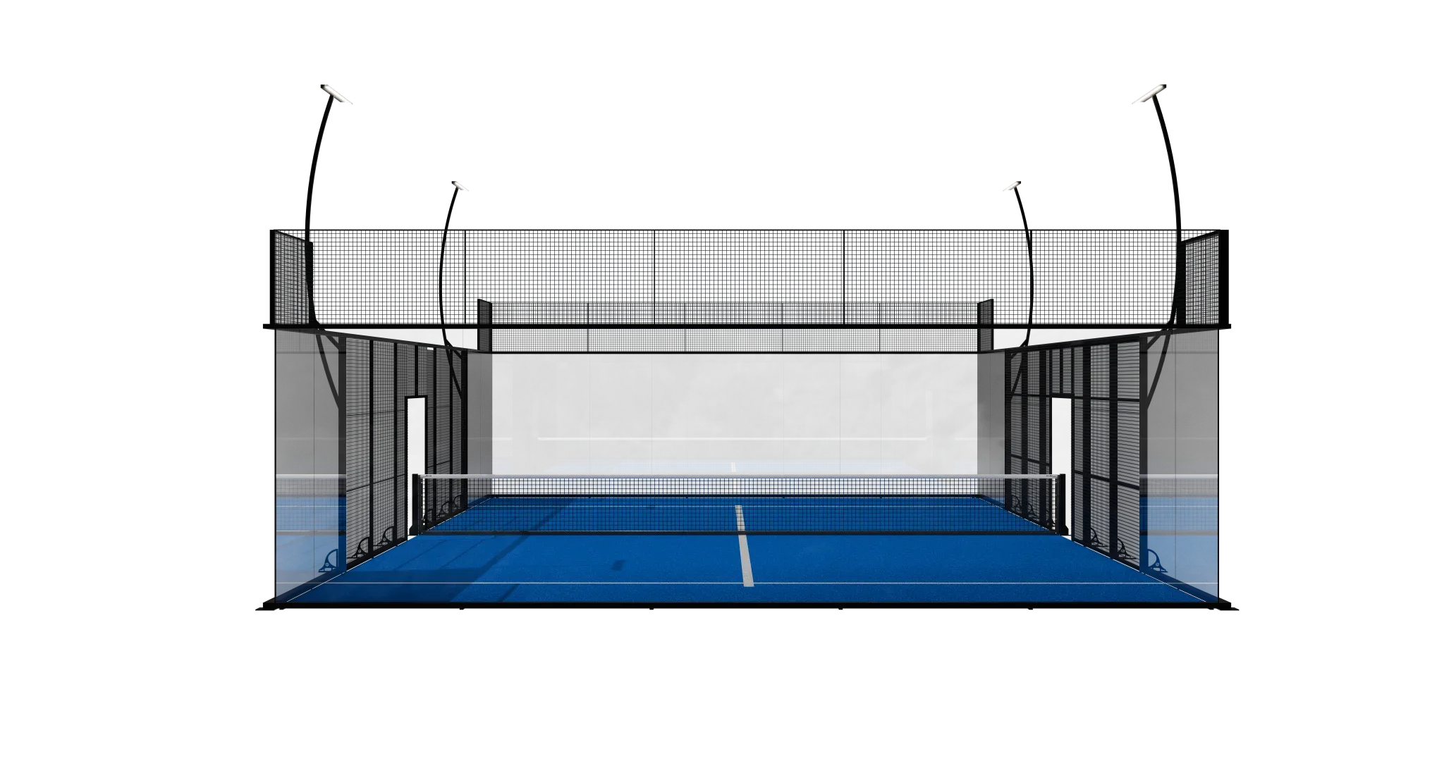 An evolution of the Panoramic model, the PRO Panoramic is defined by its elegantly slim, rounded corner pillars and refined structural profile. The result is a lighter, more architectural silhouette that enhances visibility and creates an uninterrupted visual flow across the court.