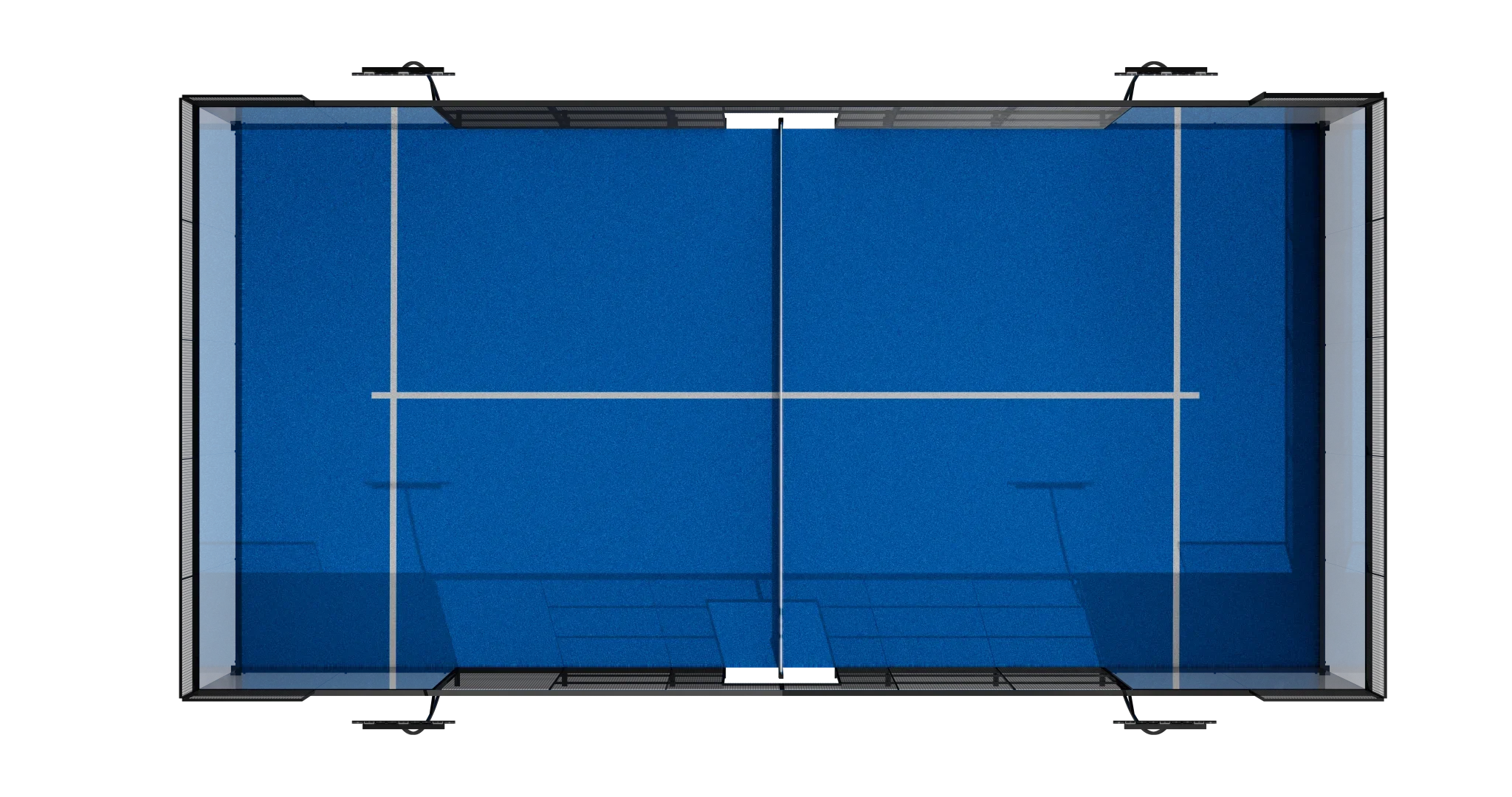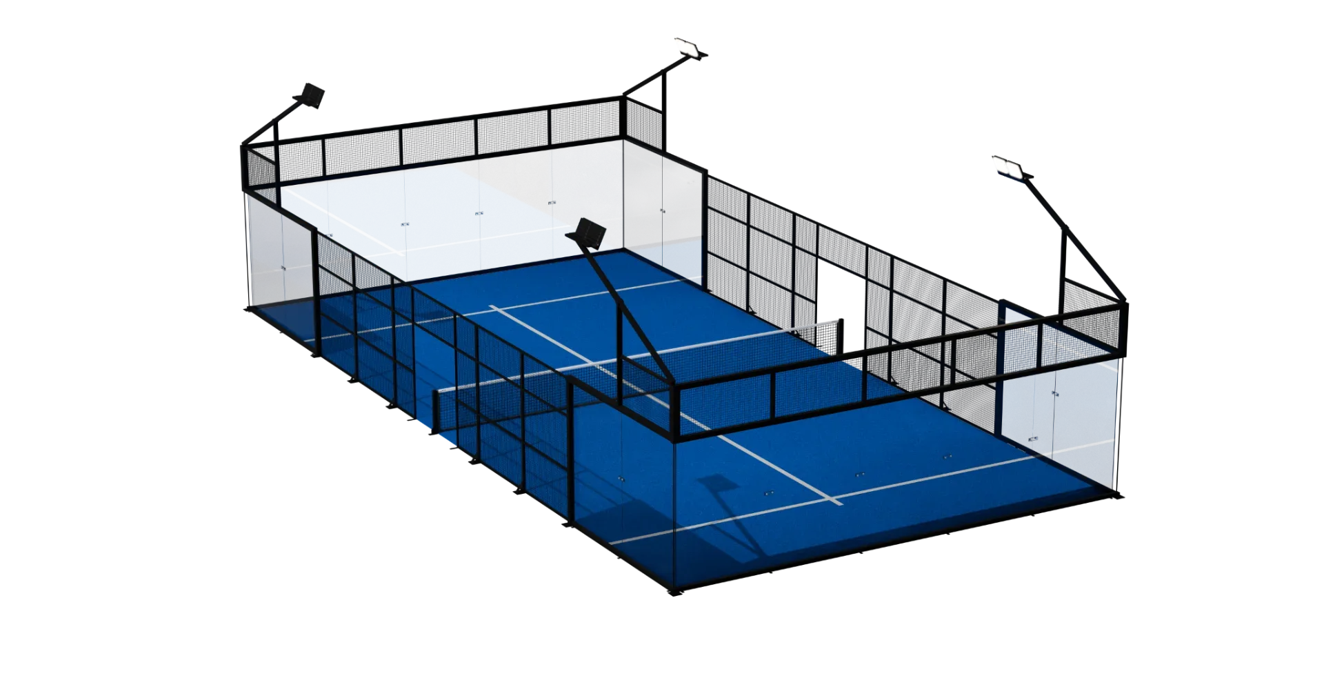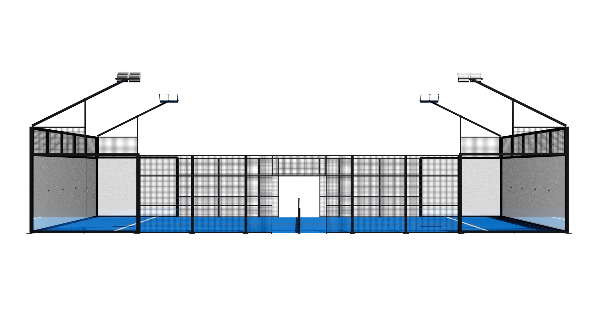 The Competition Court is defined by the complete absence of corner pillars, delivering uninterrupted panoramic sightlines and a visually weightless structure. Every angle is open. Every movement is visible. Nothing distracts from the game.