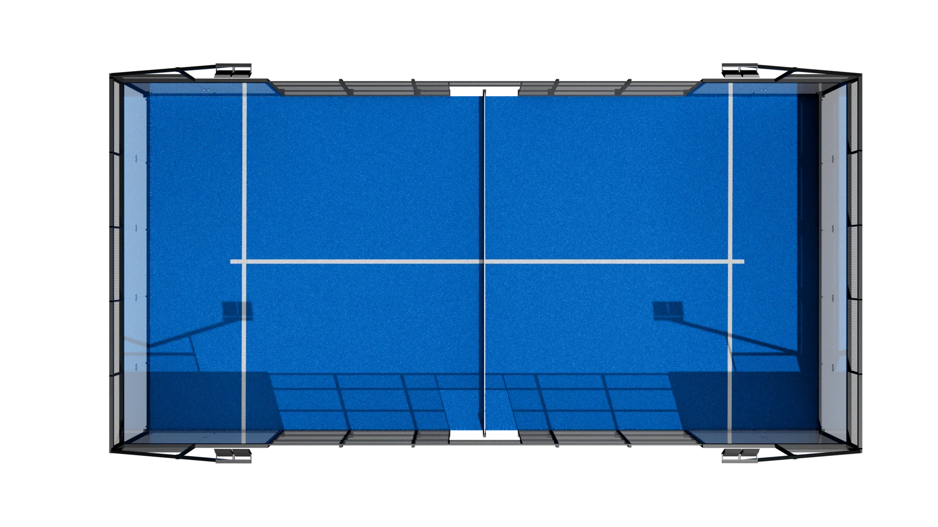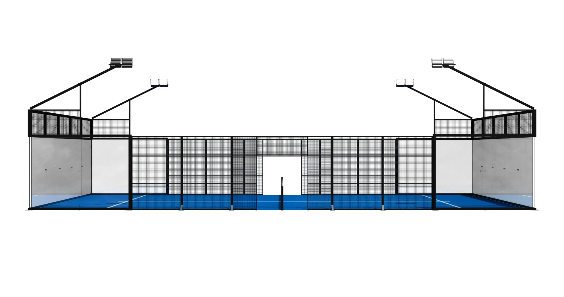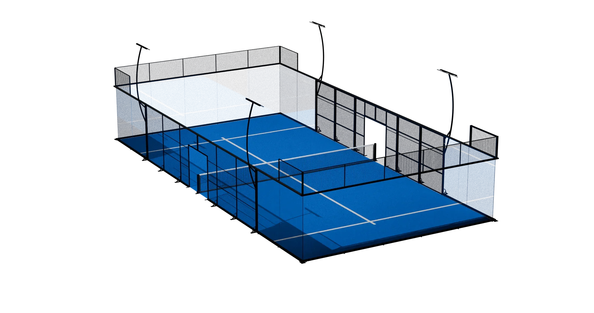 The Competition Court is defined by the complete absence of corner pillars, delivering uninterrupted panoramic sightlines and a visually weightless structure. Every angle is open. Every movement is visible. Nothing distracts from the game.